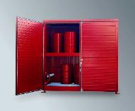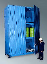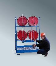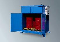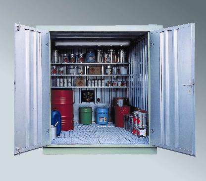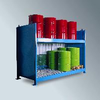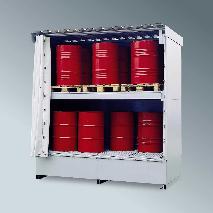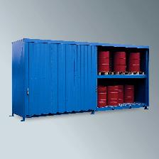 preisgünstig Gefahrgutlager mit Auffangwannen, Fassregale usw.
